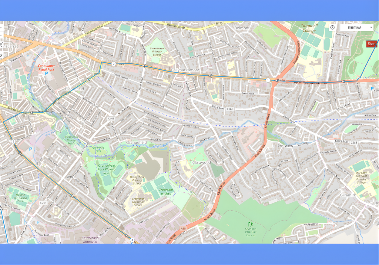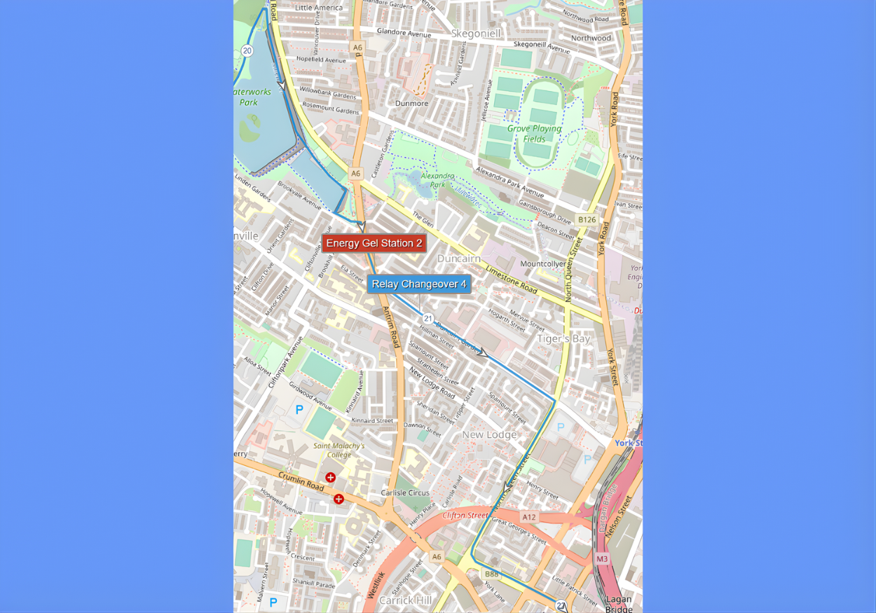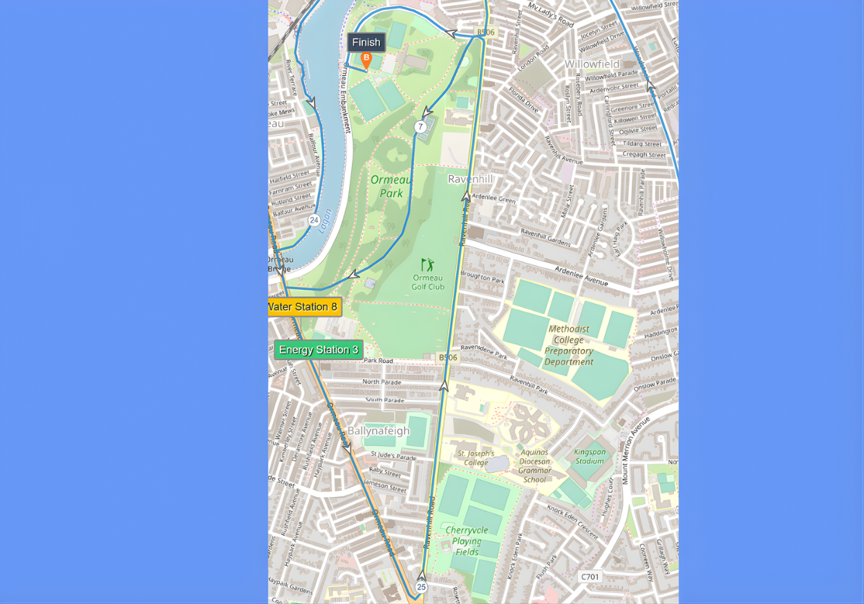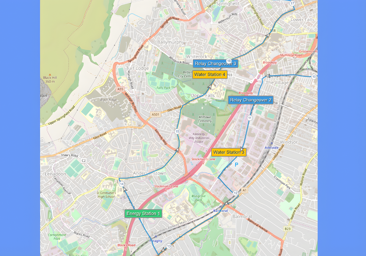 This guide is based on the official route map provided by the Belfast City Marathon organisers via Plotaroute, which you can view here. All mile markers and descriptions are aligned with that version. Please be aware that other versions of the map, such as the JPEG route poster, may show mile markers in slightly different locations.